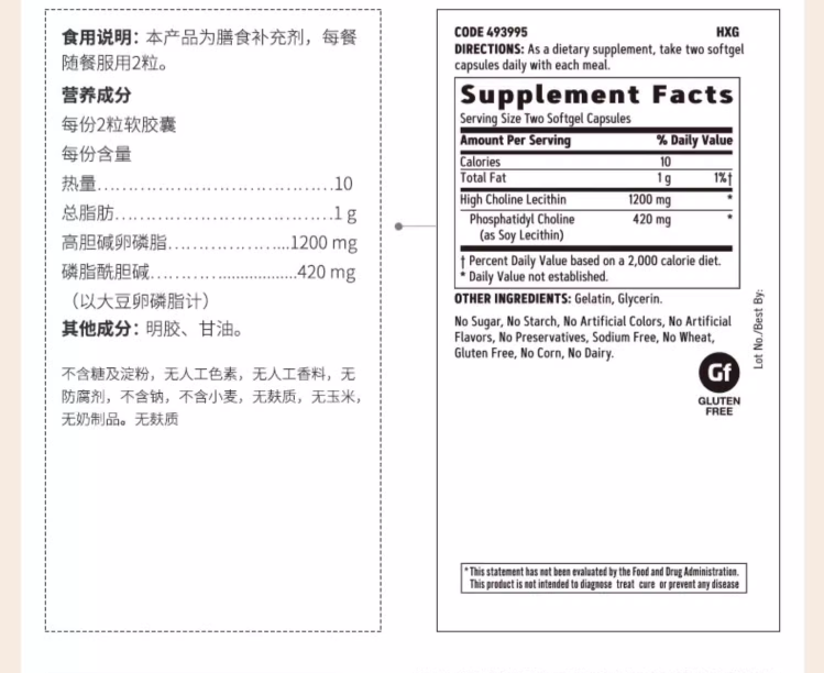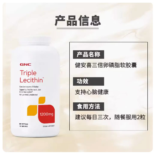 GNC健安喜美国大豆卵磷脂大豆软磷脂软胶囊卵暽脂中老年保健品